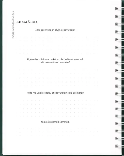 NB! Parim viis selle kasutamiseks on mõista, et uue märkmiku kasutuselevõtt toetab alguses teadlikumat tegutsemist ja uute harjumuste kujunemist. Järjepidevus on võtmetähtsusega.